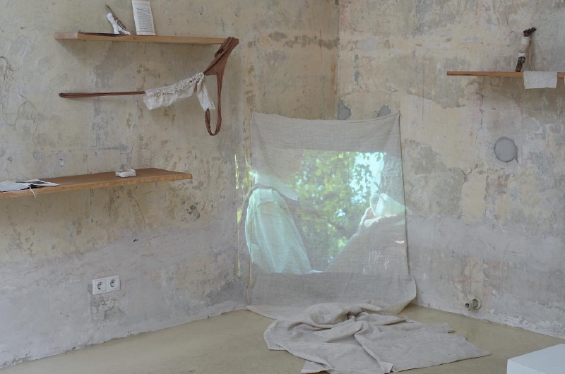 这是一个除了影像和照片以外,还加入了雕刻的艺术作品装置。
