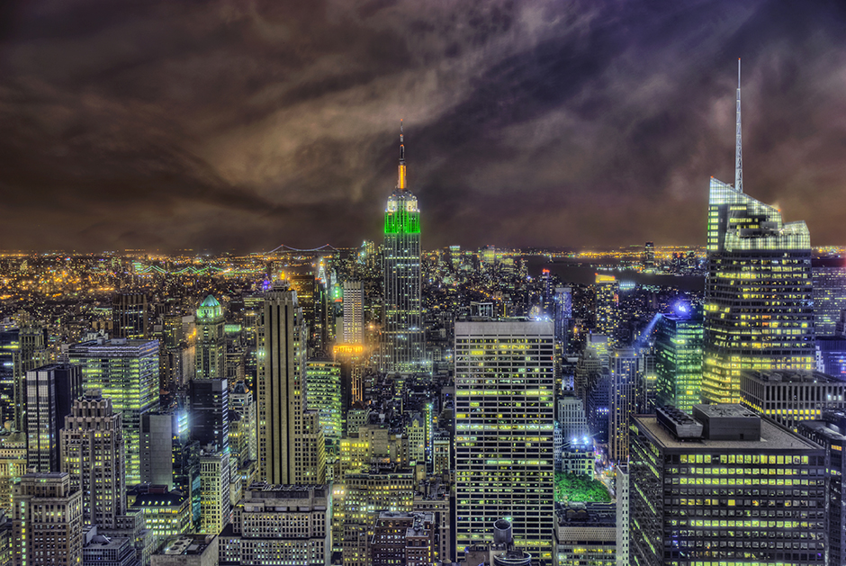 拍摄于NY(曼哈顿中诚)的30洛克菲勒广场观景台。将利用小型三脚架、不断改变曝光拍摄的9张色调进行合成。
