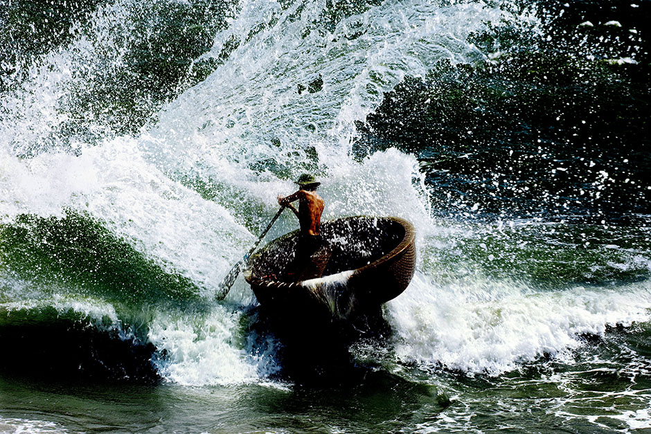 拍摄到渔民正在钓鱼的场景。他正努力克服巨浪。