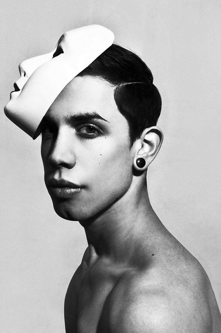一个人在雨夜里总是会有一些特别的感觉。不安的情绪会使你感到孤独,同时对生感到喜悦。就是这样的灵感让我拍摄了这幅肖像。面具是我们接近世界的方法,是我们对别人、其他的人们所出示的东西,它表现了我们在不孤独的时候的状况。我注视着照相机,不带任何面具。舍弃所有的伪装,在暴风雨天,为了真实的自我的存在,为了在那一瞬间我所感觉到的东西,用诚挚的情感揭露我所有的不安。我用最好的办法捕捉到了那一瞬间。捕捉到了认为在人生的任何瞬间任何状况下都必须坚强的我的感情与恐惧。