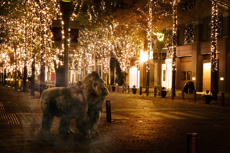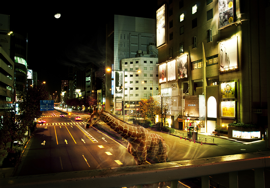 为了特意留下违和感,在创作当中,我注重研究角度,并注意这些动物的背景。