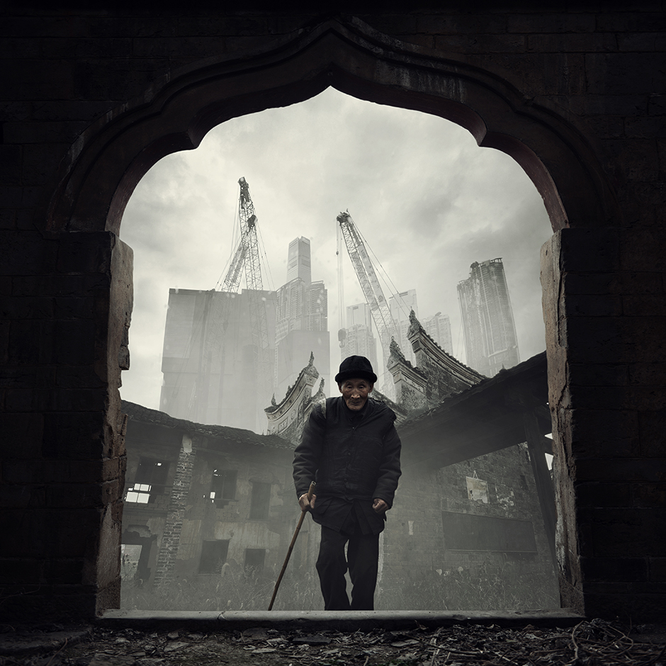 《古祠之殇》这组作品主要表达我对即将消失的古建筑的一种伤痛之情。该祠堂名叫朱家祠堂,坐落在湖南省邵阳市板桥乡,约建于清朝道光— 咸丰年间 。记得第一次去拍摄时是2003年,当时整个建筑保留的还算完整,来这里参观的人还很多 。时间一年一年过去,祠堂也一年不如一年,每次去拍摄时,我的心情一次比一次沉重。现在的祠堂大院内杂草丛生,房屋成了残垣断壁,旁边的工厂不时还冒着浓烟。看着这座破落的古建筑,那些无奈的百姓,让我产生了要创作这组作品,让社会每年我都会到这里来拍摄建筑、风光和人物,在最近的几次摄影中,才创作出这组照片。后期使用Photoshop软件进行重新组合和创意。该祠堂名叫朱家祠堂,坐落在湖南省邵阳市板桥乡,约建于清朝道光— 咸丰年间 。以后还会拍摄更多这种题材的作品,想通过我的作品,向社会传达保护古建筑的重要意义。一起共鸣。