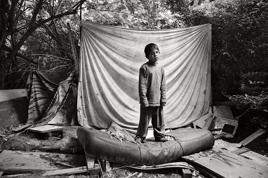 我的一系列作品是和这些人们共度一年的结果。我很高兴能在尼康大赛这样特别的舞台介绍这幅作品。题目是“罗马、巴黎近郊的帐篷”。我在2012年于巴黎郊外的一个小镇拍下了这一系列照片。因为住所很窄,我特意用了Ais 28mm。这一系列作品介绍了来自罗马尼亚东北部的多罗霍伊的50个罗马家族、在巴黎郊外的不毛之地的日常生活的困难。 他们是经济移民。在过去的20年里,生活水平持续恶化,完全失去对未来的希望,下定走出罗马尼亚的决心。在法国他们的收入(依靠街头卖艺或者废旧金属的回收)虽与以前从事农业时相比有所增加,但即使这样生活状况也没那么好。他们在国外的旅居被看做是一种投资。对作为移民的他们来说最重要的是往家乡寄钱。然后维持与家乡的关系。还有,经常在重要的节日里返乡。 他们并不游牧。他们虽基本上是出生于地方,却在罗马尼亚有家。可是,在法国,他们被贫民窟和难民营排除,被迫成为民工。在贫民窟的荒废区域共同生活对于他们来说并不是普通的事态。那是为了确保他们的自身安全,或者为了能够家族间互相支援。