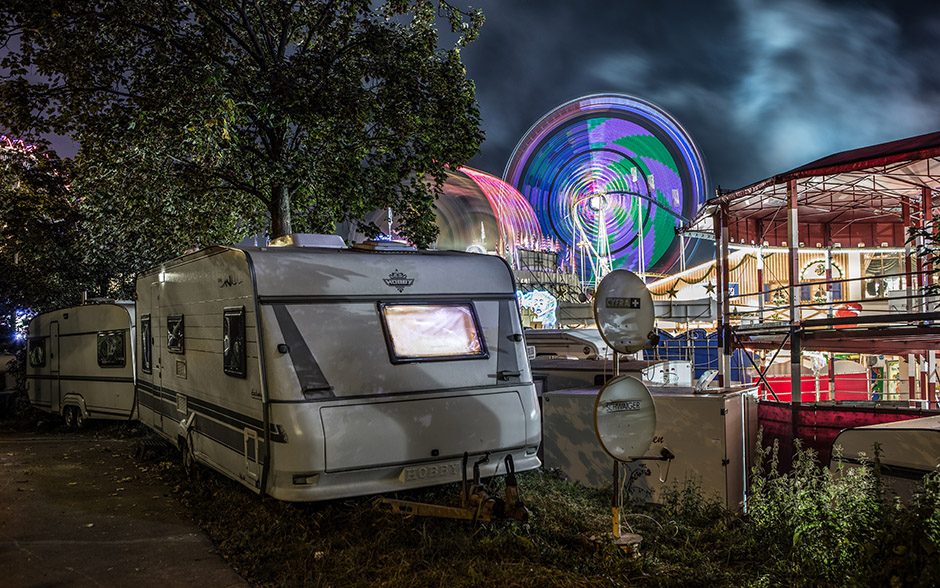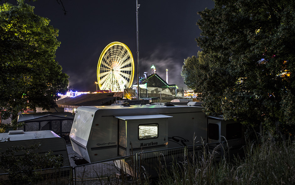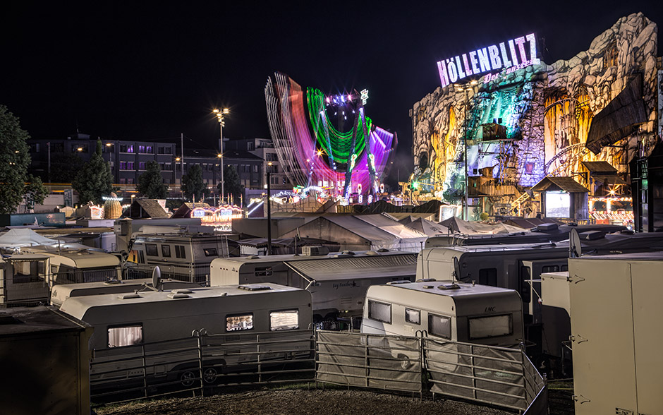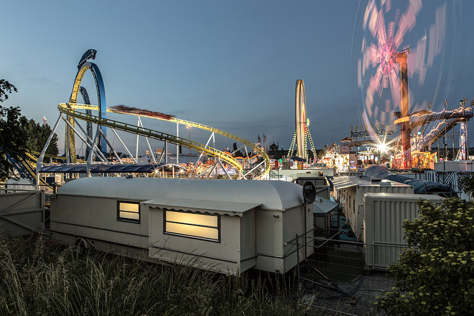 从日落后天空染上浓浓的蓝色时开始一直到夜里,曝光时间由节日活动中摆动的乘坐物和各个游艺项目来决定。2年中拍摄了3次节日活动照片。斯图加特的节日活动会场位于非常独特的地势,节日活动会场的一侧为高台,宛若一个盾牌,将内卡河畔的会场守护起来。因此能从俯瞰节日活动会的高台拍摄到这样的照片。