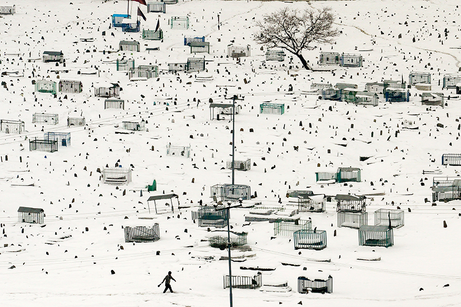 冬天的下雪天是摄影最困难的时期。为使相机不被寒冷和雪影响遭遇了很多困难。首都喀布尔冻成了冰。喀布尔位于海拔1800m处,因此这里常常下雪。我的照片表达出了阿富汗的给人们带来各种困难的寒冷冬天。