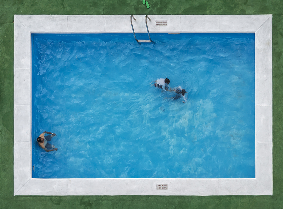 这张眺望游泳池的照片是在位于墨西哥阿卡普尔科的酒店的上层拍摄的。和人满为患的酒店的其他地方不同,游泳池在安静的地方。