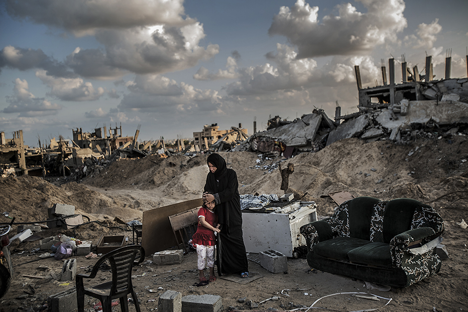 这张照片是我以孩子的心灵伤害为主要焦点的项目“加沙余波”中的一部照片。建筑物和基础设施的损坏、2200人以上的死者(大部分是一般市民,其中有大约500个是孩子)的加沙遭到的直接损害,这之外以色列的猛攻将会给那些在为时数周的空袭、海军和战车的炮攻中生存下来的巴勒斯坦的孩子们带来长期的精神、肉体上的影响。他们中的大多数都是亲戚或者朋友被杀了,目击了家、学校和清真寺被轰炸。6岁的孩子现在经历着3场战争。生存下来的人们对未来很悲观,一边自问为什么不让自己一起死去,一边等待着下一场战争的到来。据援助巴勒斯坦难民的联合国难民救济事业机构的调查,自2012年战争开始以来,加沙的孩子们的心灵创伤后精神紧张性障碍(PTSD)的发生率变成了2倍。大部分加沙的孩子都被PTSD困扰着,心理健康专家们担心恐怕因最近的轰炸使孩子们遭受了无法克服的有害的影响。 这张照片是在破坏最严重的地方之一的Sha'af附近拍摄的。那里距离因战争夺走大部分生命的Shijaiyah不是很远 。近年开始,记者已很难接近加沙。