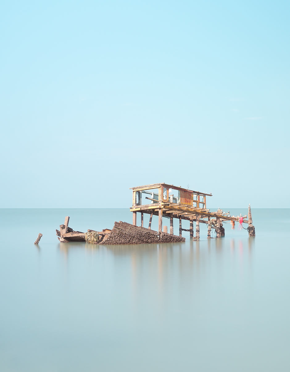 把在亚洲沿岸不同的地方拍摄的照片整理成了照片故事。 与透明的海和天空融合在一起的人类世界,在虚构的空间中和自然很好地共存着。 照片主要是在涨潮时拍摄的。 大部分都是在阳光明媚,是给我的照片添加柔和色调的下午拍摄的。 为在阳光当照期间,得到2分钟的曝光时间,我使用了2个ND滤光片(Singh-Ray Vari-ND Circular Variable Neutral Density滤光片和Singh-Ray Mor-Slo 5-Stop Solid Neutral Density滤光片)。