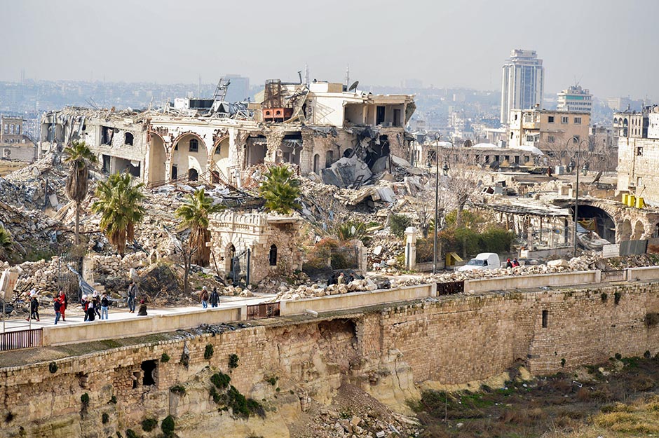 谨以此照片纪念我的父亲。他已经去世,并没有亲眼目睹阿勒颇(Aleppo)的和平。 阿勒颇城堡是世界上历史最悠久、规模最大的城堡之一。这五张照片所组成的故事,不足以充分展示破坏、恐怖主义和死亡。而这些都持续了五年多的时间。阿勒颇以及生活在悲剧和人道主义灾难中的几代人,并没有得到外界的救助。这个阿拉伯世界最美丽的城市,已经被恐怖主义摧毁殆尽。所以,世世代代在这里生活的人迫切需要面包、水、药物、保暖以及所有的生活必需品。