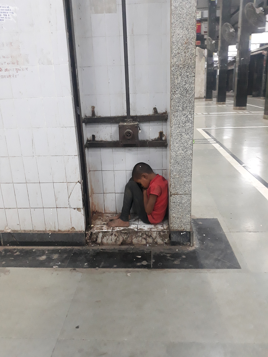 这是新孟买的尼鲁尔车站。这个地方就像午夜一点一样,他在一个角落里寂寞地睡着了。这张照片显示了生活于21世纪的另一类孩子的生存现状。